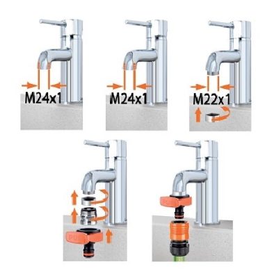 - Bạn có thể kết nối khớp một cách dễ dàng nếu như ống nước nhà bạn có ren trong 22mm hoặc ren ngoài 24mm