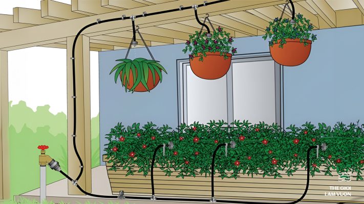 2. Sử dụng Tê để dẫn các đường ống tới từng gốc, chậu cây