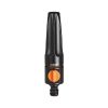 8536 có cơ chế đổi tia phun thông minh từ Claber. Chỉ cần xoay nhẹ đầu vòi theo chiều kim đồng hồ hoặc ngược lại để chuyển chế độ phun. Tắt mở nước đơn giản bằng van khóa màu cam trên thân vòi.