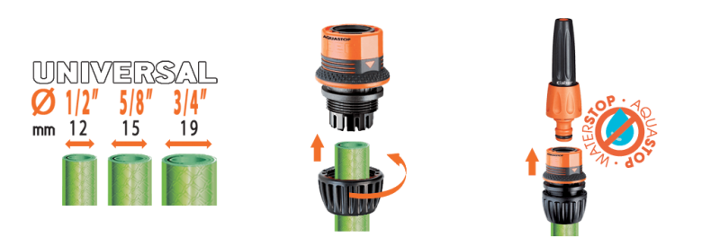 Khớp nối 8536 là sản phẩm đa năng nhất trong dòng sản phẩm khớp nối Quick-Click độc quyền Claber Italy. Thao tác kéo / đẩy đơn giản để tháo / lắp khớp nối vào vòi. Kết nối đến 3 kích thước ống khác nhau.